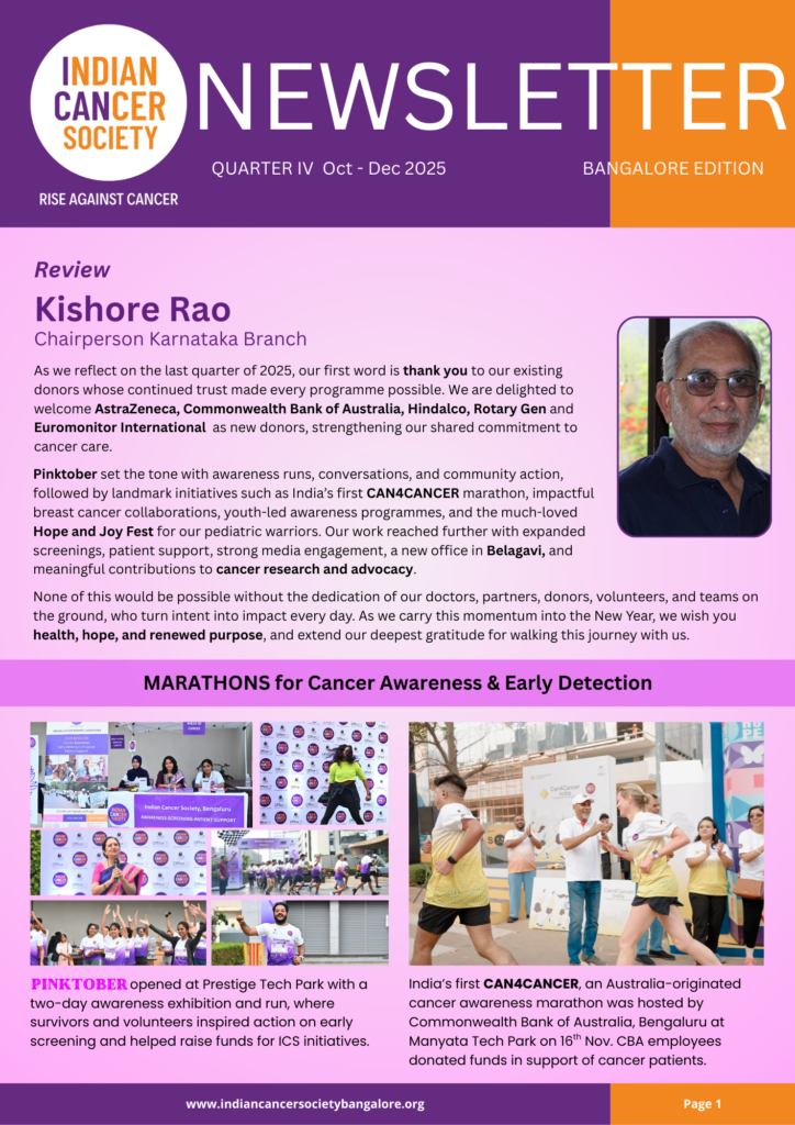 Kishore Rao started Indian Cancer Society, Karnataka, in 1986 as a voluntary organisation, and today ICS has offices in Kalaburagi and Mangaluru besides Bengaluru. In 1994 he started Karunashraya in partnership with Rotary Bangalore Indiranagar- a shining example of a cancer hospice across the country. Kishore has been in the not-for-profit sector for the last 35 years.
